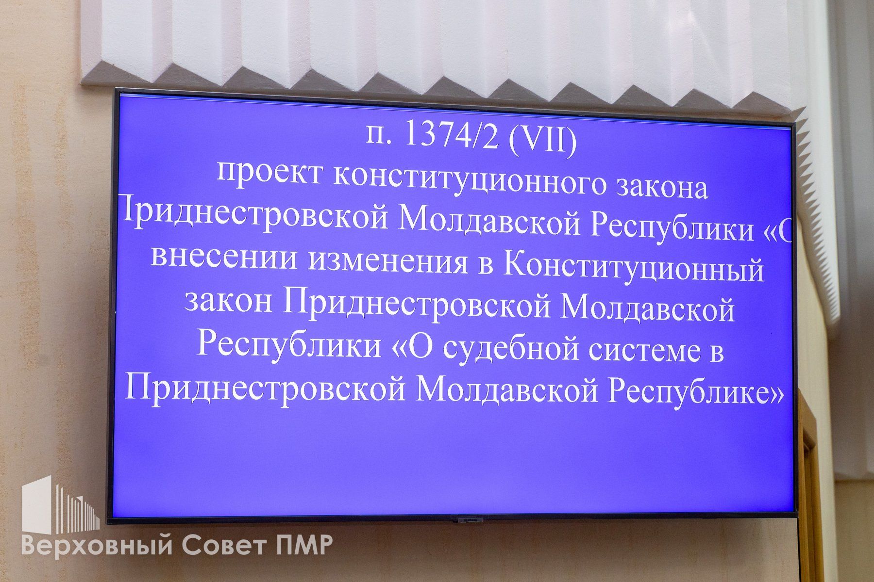 Верховный Совет принял также в первом чтении сопутствующие изменения в два профильных закона: в Конституционный закон «О судебной системе в Приднестровской Молдавской Республике» и в Конституционный закон «О статусе судей в Приднестровской Молдавской Республике».