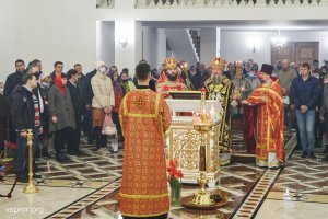 В этом году карантинные ограничения на праздник уже не такие строгие, поэтому верующие смогли молиться в храме. Крестовоздвиженский собор находится в микрорайоне Кировский. Здесь продолжаются еще строительные работы. Храм начали возводить по благословению и по инициативе Владыки Саввы, при поддержке благотворителей. В том числе, и из России.