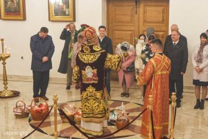 Праздничное пасхальное богослужение состоялось в нижнем, зимнем храме собора. Незадолго до полуночи верующие вышли на Крестный ход, который символизирует шествие жен-мироносиц ко гробу Спасителя. Парламентарии вместе с другими верующими обошли Крестным ходом вокруг храма и приняли участие в заутрене.