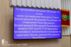 Верховный Совет ПМР на 3-м чрезвычайном заседании утвердил указ главы государства о продлении на территории республики режима чрезвычайного экономического положения до 10 марта включительно. О том, что режим ЧП в экономике будет продлен, Президент ПМР Вадим Красносельский рассказал еще на прошлой неделе в интервью российскому изданию «Известия».