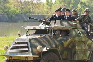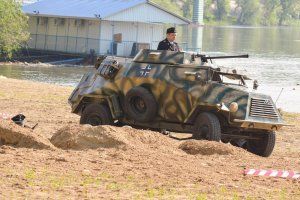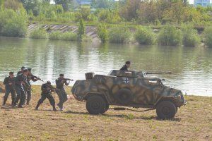 После реконструкции событий Великой Отечественной военный спецназ подготовил выступление. Все желающие смогли ознакомиться с образцами военной техники, стрелкового оружия разных эпох и ретроавтомобилями.