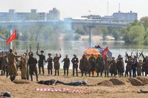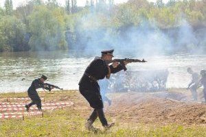 На столичном пляже 3 мая прошла реконструкция боя времён Великой Отечественной войны. В ней участвовало более 70 человек – военнослужащие ОГРВ, участники движения «Наследники Побед», воспитанники Тираспольского суворовского военного училища. Военный праздник, который был посвящен сразу двум датам – Дню Победы и 75-й годовщине освобождения Тирасполя – посетили Президент Вадим Красносельский, председатель Верховного Совета Александр Коршунов, представители министерств и ведомств, общественных организаций, жители и гости города.