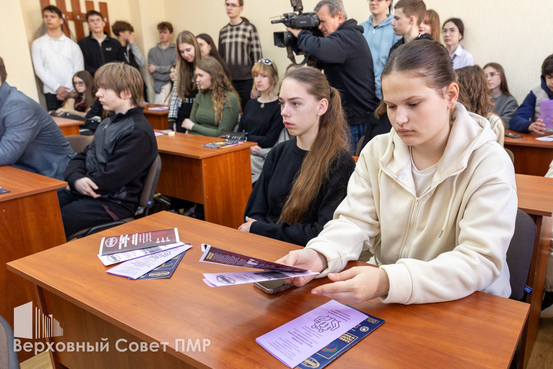 Мероприятие началось с приветственного слова Председателя Верховного Совета ПМР, декана факультета государственного управления и социально-гуманитарных наук Татьяны Залевской. Спикер рассказала десятиклассникам о возможностях обучения на факультете, его направлениях и практической стороне подготовки специалистов.