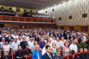 На торжественном собрании перед собравшимися выступил Президент Вадим Красносельский. Он отметил, что за эти годы Приднестровье добилось многого, но это было бы невозможно без тех, кто не задумываясь о званиях и наградах, не щадя жизни встал на защиту семьи, родной земли, нового государства.