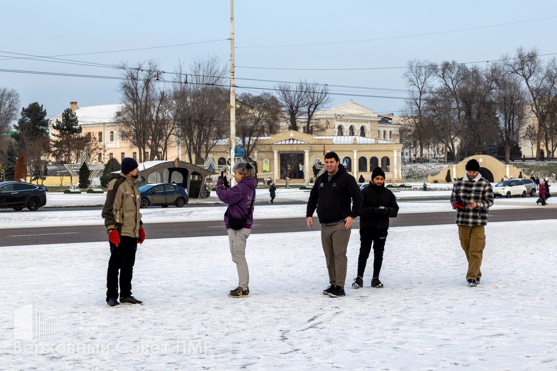 Снежный Тирасполь-2026: фоторепортаж Главная Новости Новости Верховного Совета 16.01.2026 В начале 2026 года в Приднестровье выпал долгожданный снег и установилась морозная погода. Праздничное настроение и снежный Тирасполь - в объективе фотографа парламентской пресс-службы.
