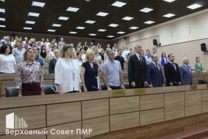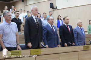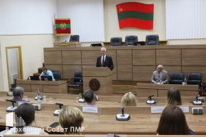 Передать детям и внукам память об историческом пути Приднестровья, а также обычаи, культуру и ценности народов Приднестровья – такая задача стоит перед нынешним поколением приднестровцев. Об этом говорил Председатель Верховного Совета Александр Коршунов на торжественном собрании, прошедшем в Верховном Совете в честь Года приднестровского народа. Предшествовал собранию гимн Приднестровской Молдавской Республики, прозвучавший на русском, молдавском и украинском языках.