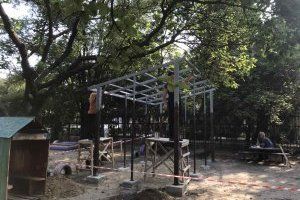 В столичном детском саду №33 «Тополек» установили новую беседку. В ней в жару дети смогут прятаться от солнца, а в дождь – играть на свежем воздухе. Два года назад в садике построили похожую беседку. Деньги выделили из Фонда капвложений. В этом году, чтобы и другим детям было комфортно играть на улице, родители обратились за помощью к депутату Верховного Совета по избирательному округу №32 «Комсомольский» Андрею Межинскому. Они рассказывают, что через пару дней после обращения пришли рабочие, осмотрели участок, произвели замеры и приступили к строительству новой беседки.