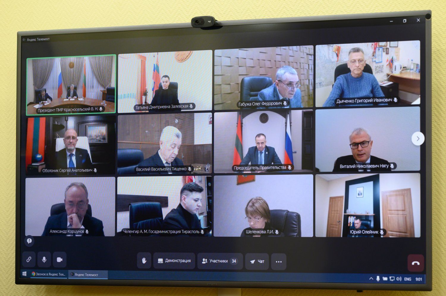 Председатель Верховного Совета Татьяна Залевская и члены парламентского Президиума приняли участие в традиционном для начала каждой недели селекторном совещании при Президенте ПМР.