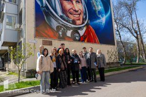 К 60-летию первого полета в космос на бульваре Гагарина в 2021 году открыли 11-метровый баннер с изображением космического первопроходца. На фасаде дома №71 по улице Свердлова теперь красуется такой же, вновь напечатанный. За 5 лет изображение выцвело. Свежий вид ему вернули по обращению председателя Республиканской партии «Обновление» Галины Антюфеевой.