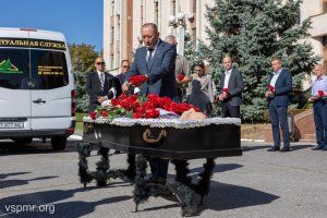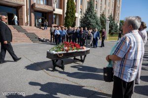 Сегодня на пленарном заседании Верховного Совета ПМР депутаты VII созыва почтили память коллеги-парламентария Виктора Арестова минутой молчания. Затем был объявлен перерыв. Депутаты вышли к порогу здания парламента, где смогли отдать дань уважения и попрощаться с одним из основателей республики.