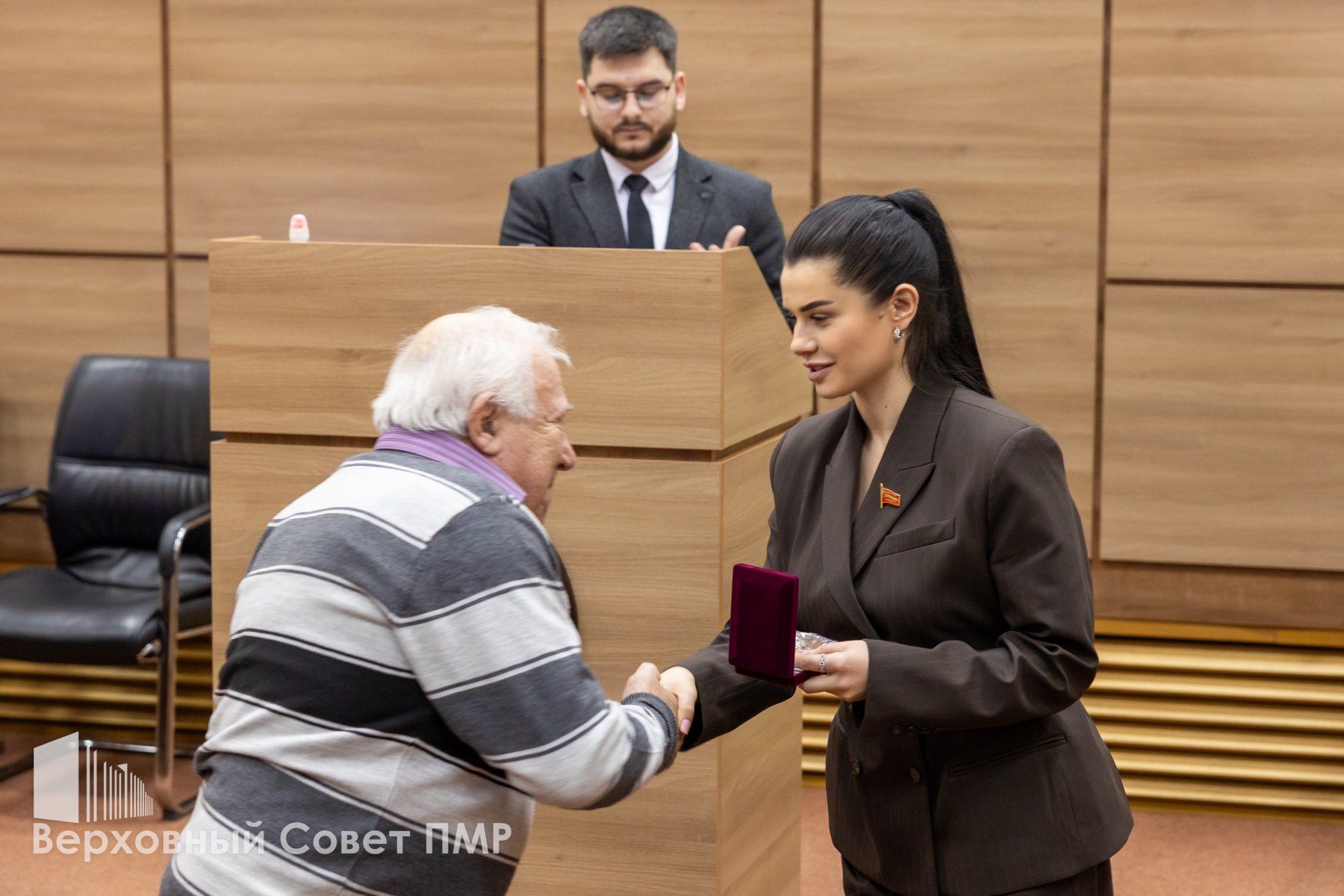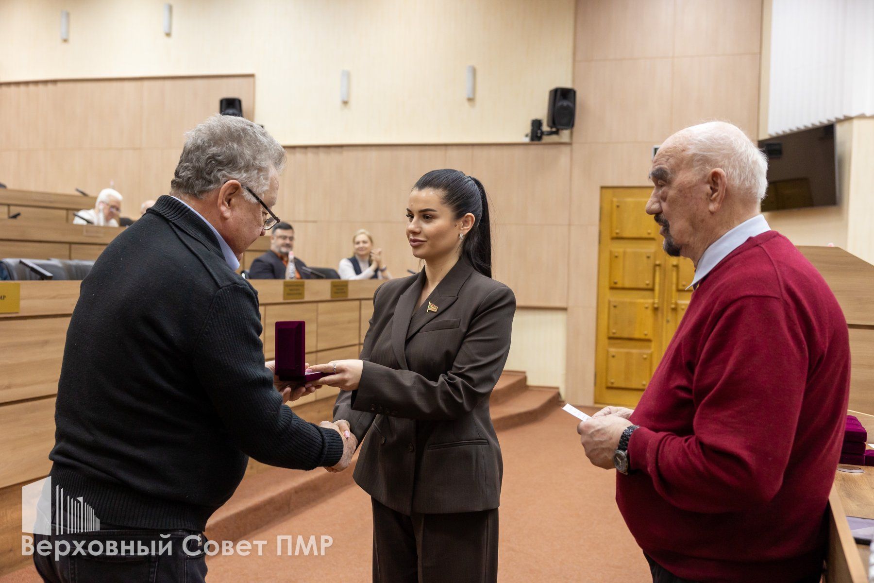Спикер парламента вручила первым депутатам юбилейный знак «35 лет Верховному Совету ПМР». Татьяна Залевская пожелала крепкого здоровья и добавила, что нынешний депутатский корпус постарается не подвести тех, кто заложил основы приднестровской государственности, и кто сегодня продолжает передавать свой опыт в рамках Совещательного собрания.