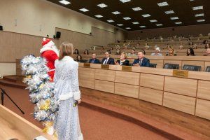 Мир живет ожиданием самого главного праздника – Нового года. Законодательный орган – не исключение. Сегодня поздравить сотрудников Аппарата Верховного Совета с наступлением Нового года пришли самые главные персонажи – Дед Мороз и Снегурочка. С собой они прихватили мешок поздравлений, эмоций и подарков. А компанию им составили известные приднестровские артисты Наталья Кирка, Виктория Лозинская, Михаил Патрашку, подарившие тем, кто ежедневно готовит законы, по которым живет страна, свое замечательное творчество.