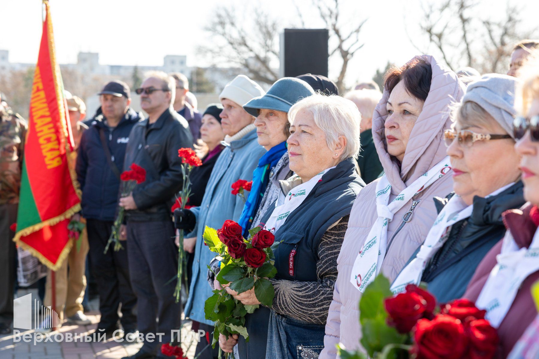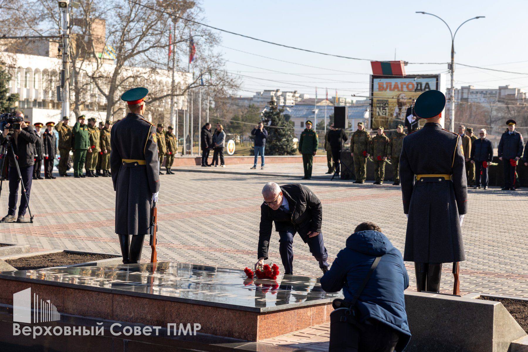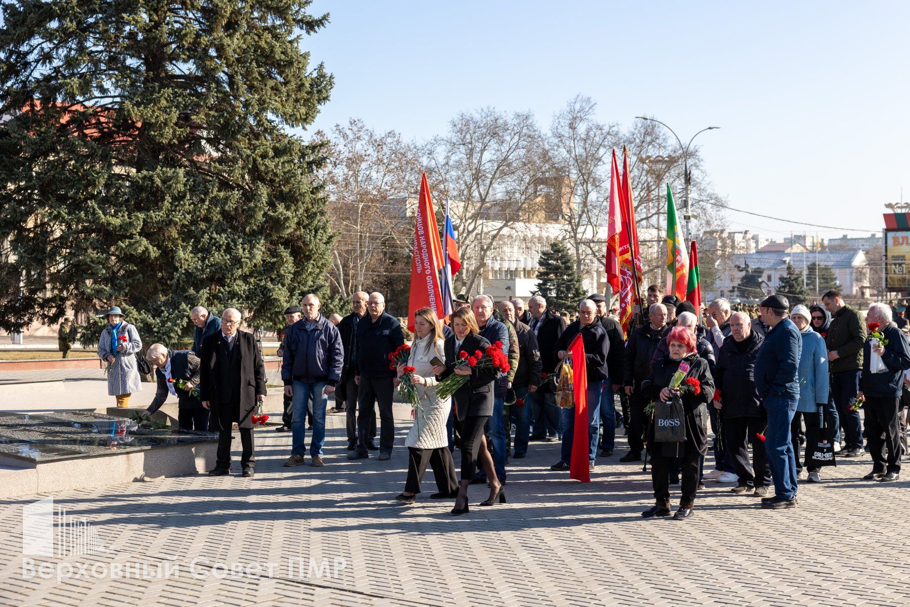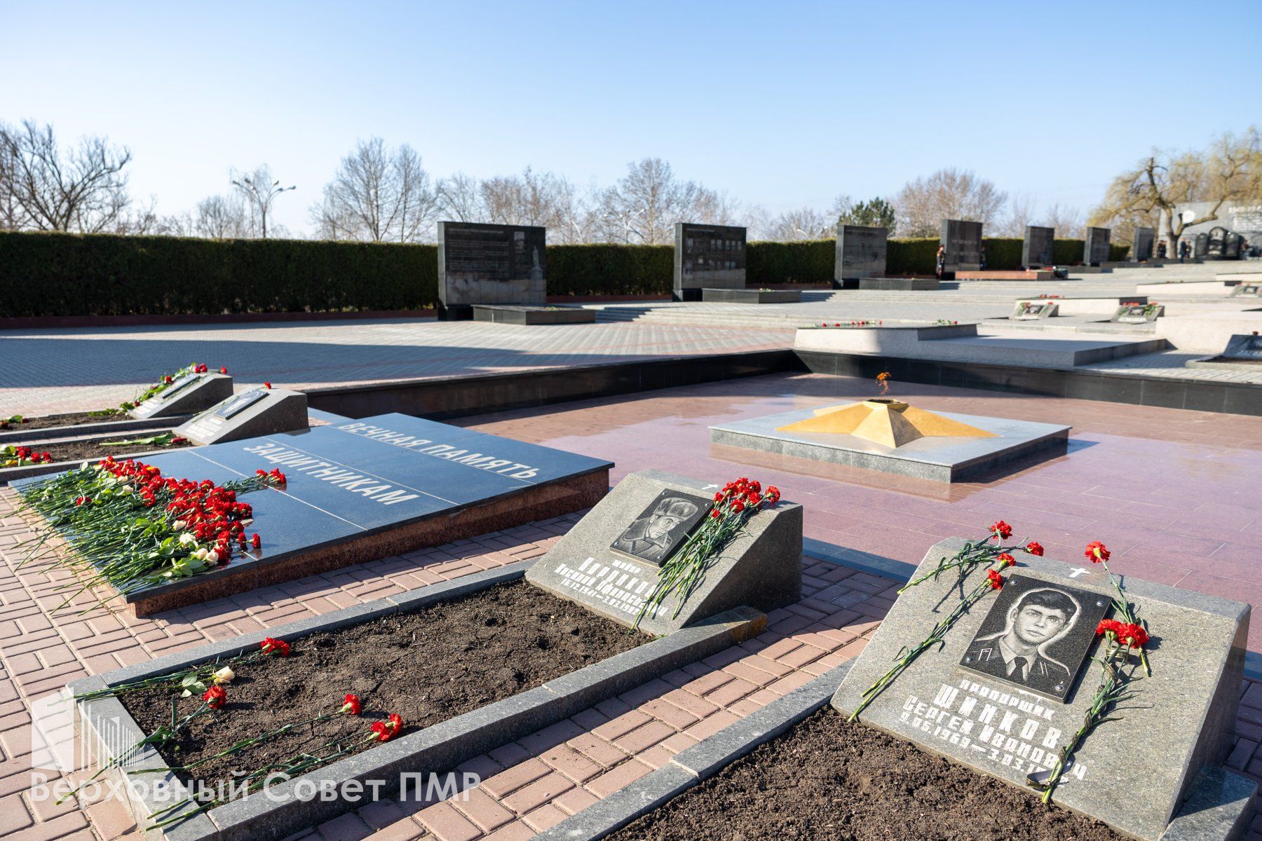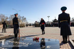 Представители органов госвласти и управления почтили минутой молчания память всех защитников Приднестровья, павших за свободу и независимость своего Отечества. Депутаты вместе с общественниками и неравнодушными тираспольчанами возложили цветы к Вечному огню и к памятным плитам с именами защитников ПМР.