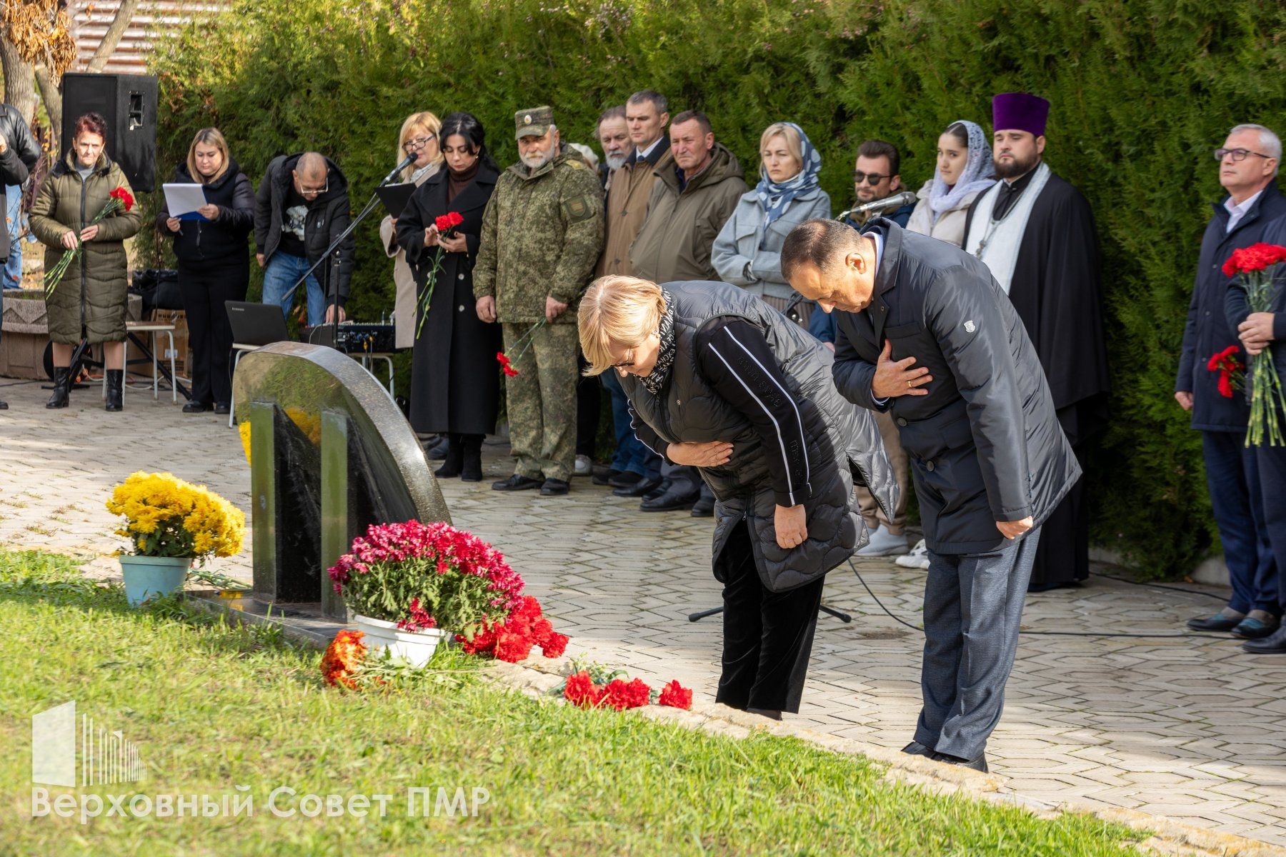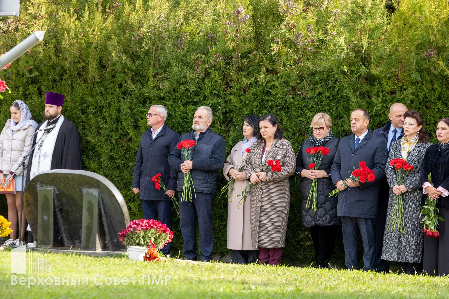 На месте перезахоронения останков расстрелянных отслужили заупокойную литию. К памятнику жертвам политических репрессий легли живые цветы.