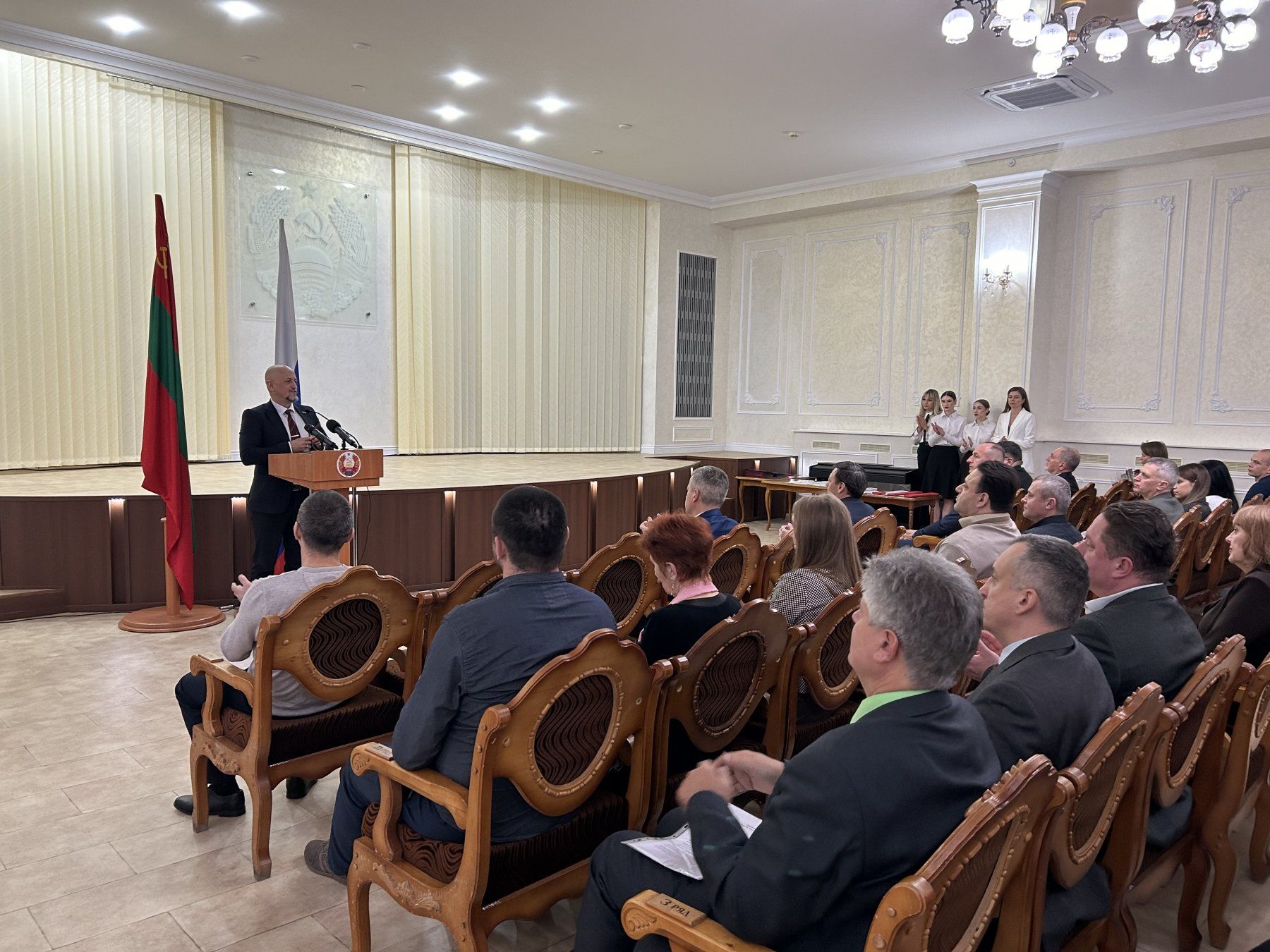 22 декабря профессиональный праздник отмечают специалисты энергетической отрасли Приднестровья. В малый зал Дворца Республики пригласили работников предприятий «Днестрэнерго», «Тирастеплоэнерго», Единых распределительных электрических сетей, Дубоссарской гидроэлектростанции. Отличившимся вручили государственные награды. Грамоты и благодарственные письма Президента ПМР вручил заместитель председателя Комитета Верховного Совета по экономической политике Вадим Левицкий. Депутат обратился к присутствующим как к коллегам, так как сам работает в сфере энергетики, с 2010 года возглавляет предприятие «Тиротекс-Энерго».