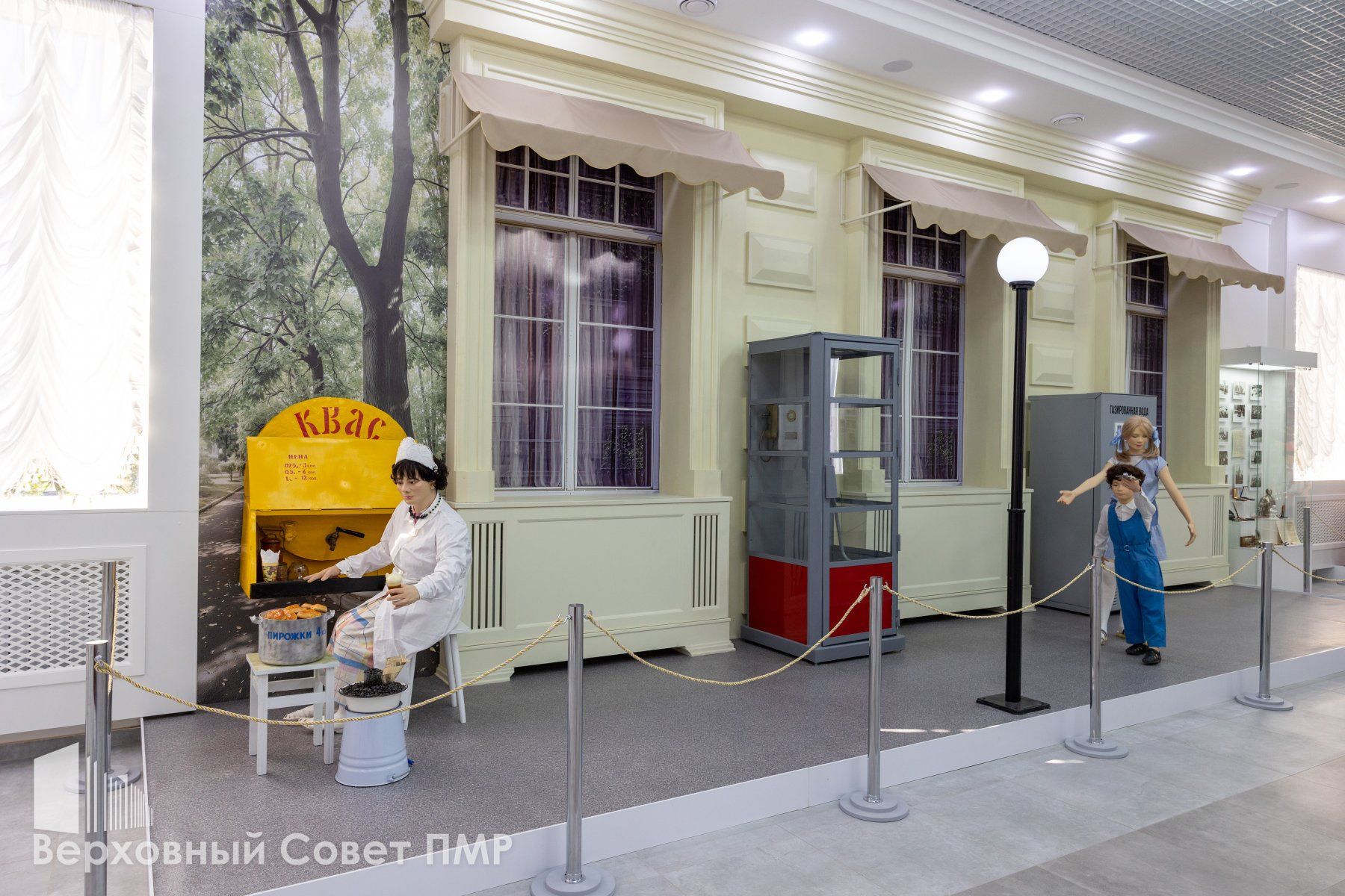 В зале о советском периоде собрано все, что откликается в душе каждого, кто застал ту эпоху. Это женщина, продающая квас по 6 копеек и пирожки по 4, интерьер квартиры эпохи СССР с ламповым телевизором, накрытым салфеткой, и сервантом с сервизами. Приковывают внимание телефонная будка, автомат с газированной водой и граненным стаканом, пионерская комната.