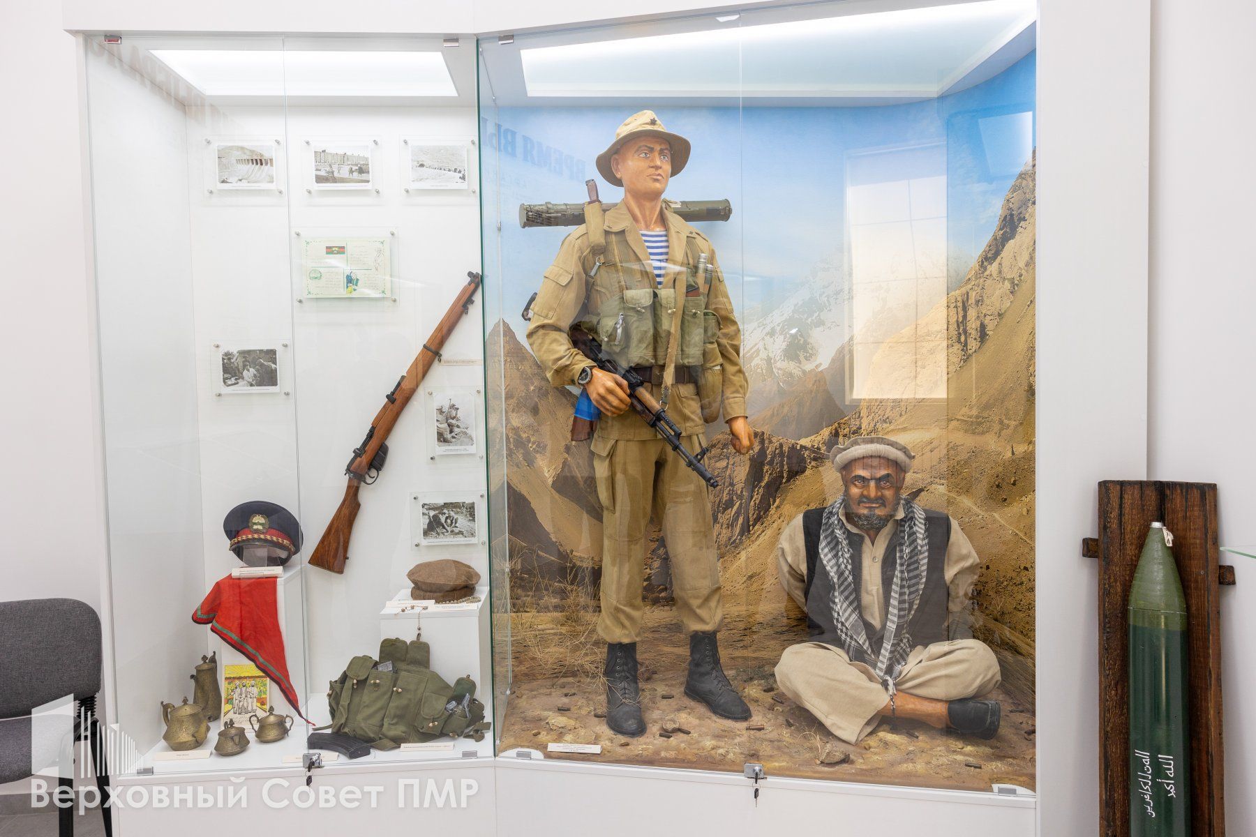 В зале «Советская армия. Война в Афганистане 1979 – 1989 гг.» об экспонатах рассказывал председатель Приднестровской ассоциации ветеранов войны в Афганистане, депутат Верховного Совета Игорь Буга. Он показал вооружение, обмундирование воинов-афганцев, среди которого были и личные вещи.