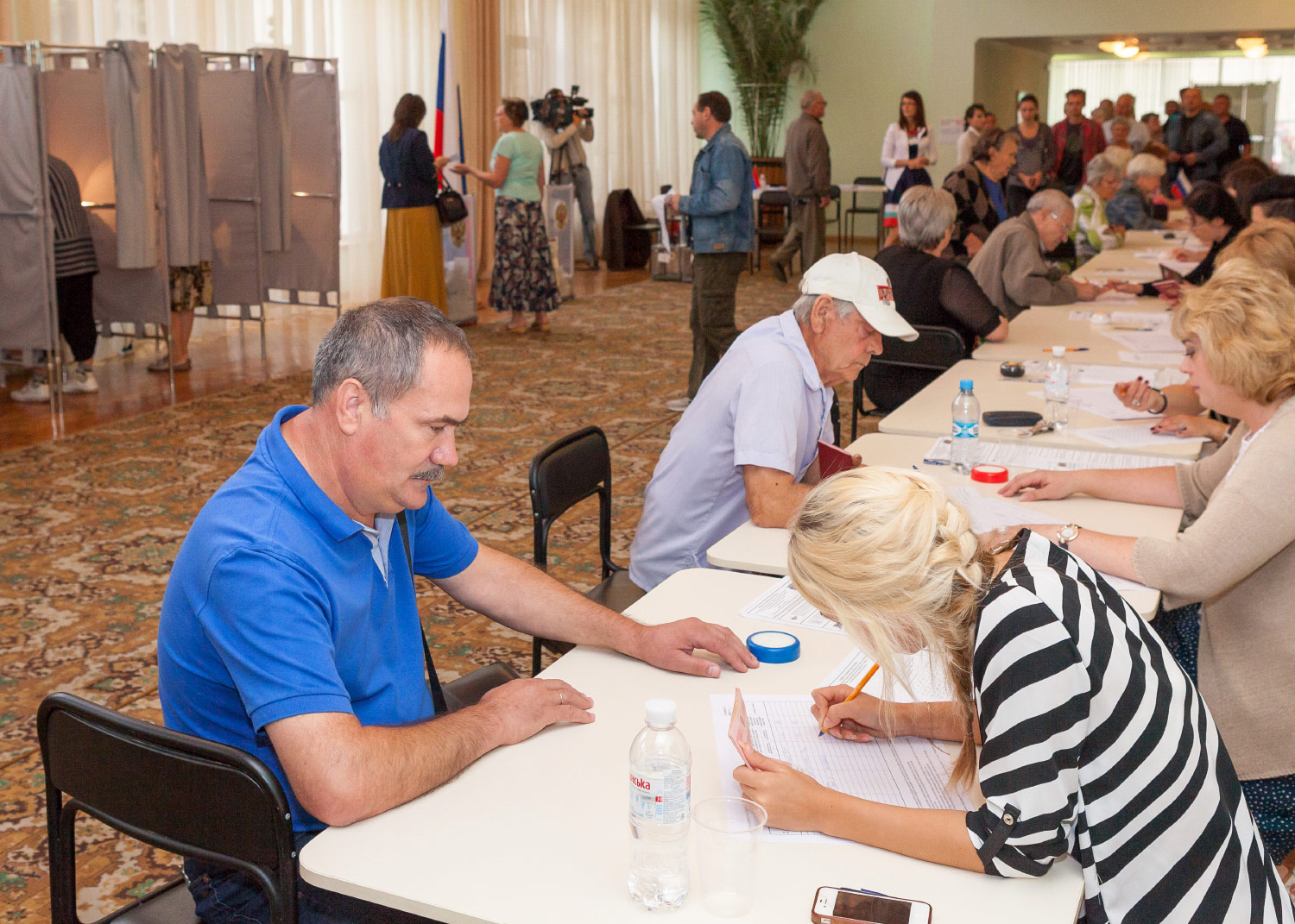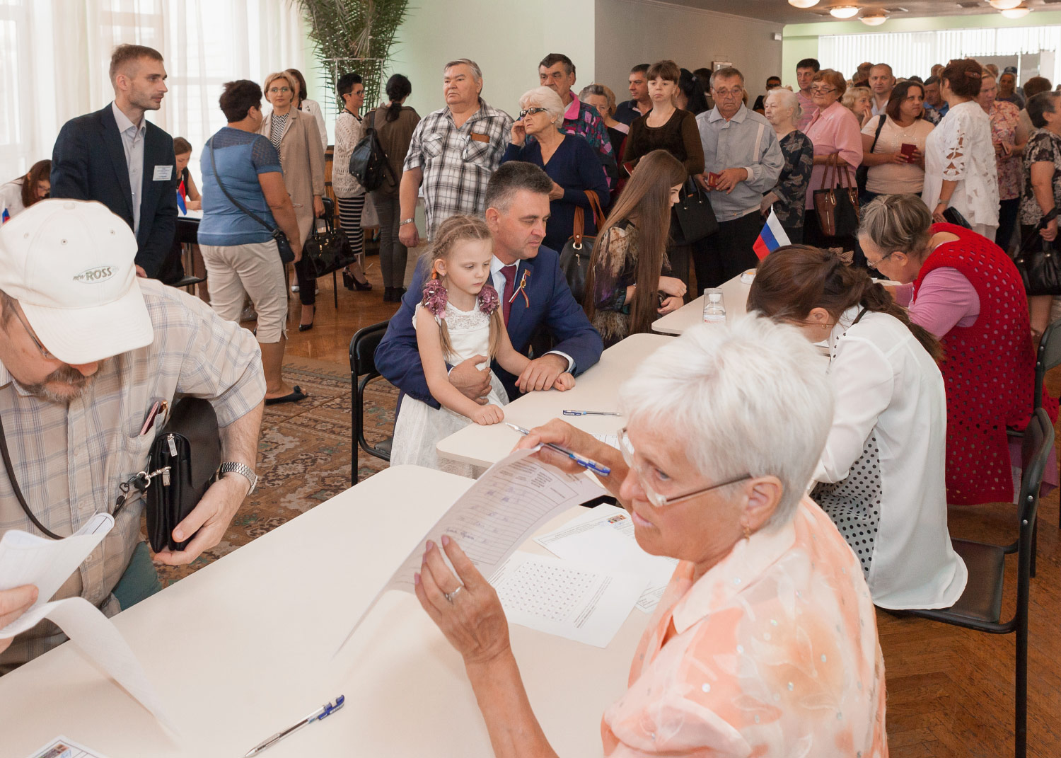 18 сентября. 10 часов утра. Во Дворце Республики многолюдно. Сюда на избирательный участок №8205 идут жители столицы, для того, чтобы отдать голос за кандидатов в депутаты Государственной Думы РФ. На стенде перечень партий, претендующих на место в парламенте России, фото и биографии кандидатов. Но люди идут голосовать уже определившись – кто из россиян, на их взгляд, достоин представлять интересы Приднестровья в законодательном органе России. Приднестровцы идут голосовать семьями, в приподнятом настроении.