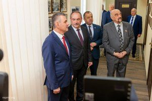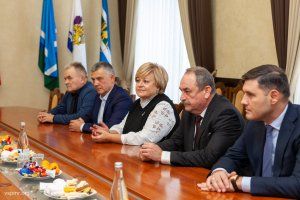 После осмотра фотовыставки встреча парламентариев и гостей прошла в брифинговом зале в формате чаепития. Приветствуя участников встречи, спикер Александр Коршунов напомнил историю создания законодательного органа.