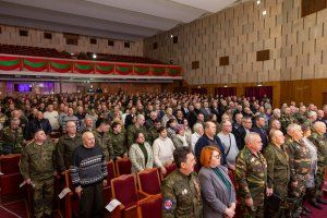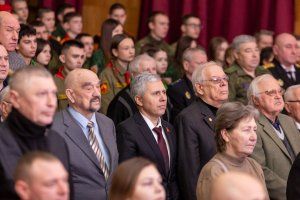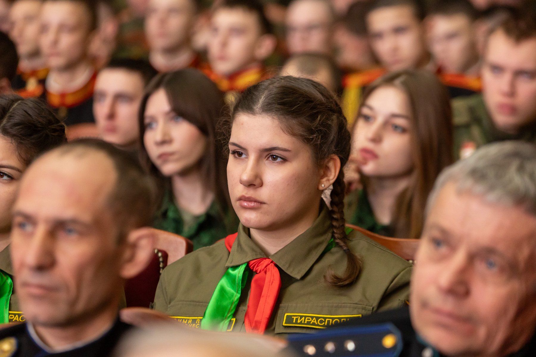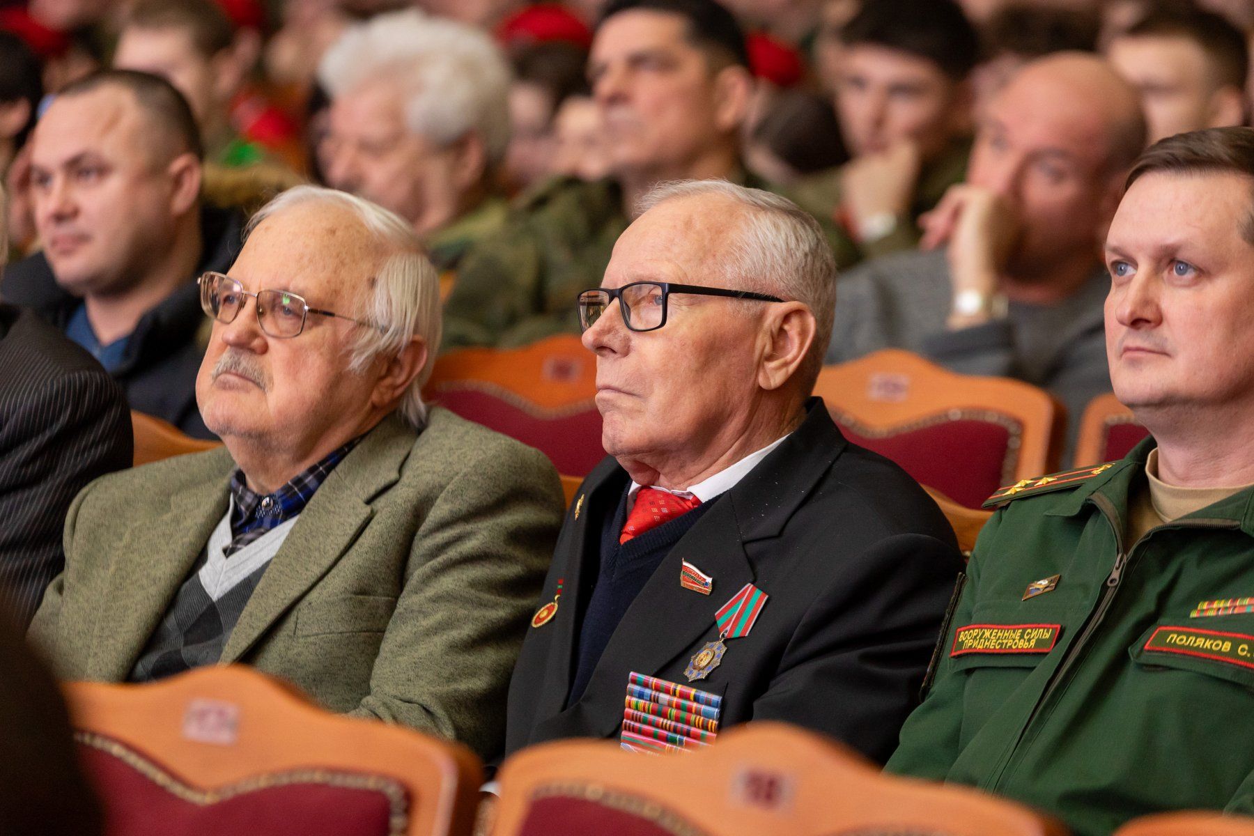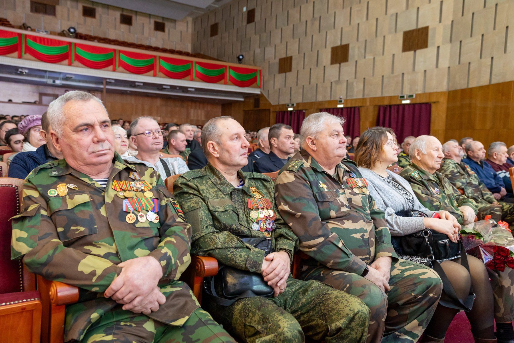 Во Дворце Республики собрались ветераны ТСО, защитники Приднестровья, первый Президент ПМР Игорь Смирнов, заместитель председателя Комитета Верховного Совета по законодательству, правоохранительным органам, обороне, безопасности, миротворческой деятельности, защите прав и свобод граждан Олег Петрик, представители Правительства, Тираспольского городского Совета народных депутатов, юнармейцы, суворовцы.