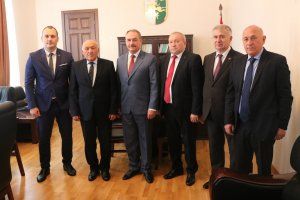 Накануне торжественной церемонии Председатель Верховного Совета Александр Коршунов встретился со своим коллегой Валерием Кварчия, спикером Народного Собрания – Парламента Республики Абхазии. Открывая встречу, Валерий Кварчия выразил благодарность приднестровским коллегам за плодотворное межпарламентское сотрудничество как в рамках двустороннего взаимодействия, так и на площадке Межпарламентской Ассамблеи Сообщества «За демократию и права народов». В ходе встречи руководители парламентов подчеркнули важность взаимодействия в вопросах законотворческой деятельности, а также по другим важным направлениям работы парламентов. Александр Коршунов подчеркнул важность продолжения конструктивного приднестровско-абхазского диалога.
