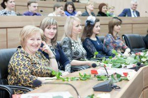 Глава профильного парламентского комитета по образованию, председатель профсоюзного комитета Верховного Совета Владимир Боднар поздравил коллег-женщин в свойственной ему манере доброжелательности и доброго юмора. В частности, он заметил, что, «увидев грустные глаза Адама, Бог создал из его ребра первую женщину». Владимир Боднар использовал все богатство и многообразие русского языка, чтобы наградить сидящих в зале прекрасных милых дам красноречивыми, «говорящими» эпитетами.