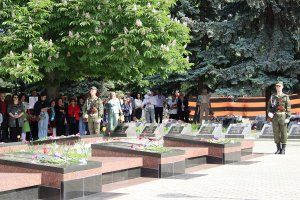 На Площади Героев собрались бендерчане, представители трудовых и ученических коллективов, руководство города, чтобы поклониться подвигу солдат Победы. У многих в руках были портреты родственников - героев «Бессмертного полка».