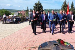 На гранитные плиты с именами погибших и к Вечному огню легли живые цветы – в знак благодарности поколению победителей за их стойкость, мужество и героизм, беззаветную любовь к родному Отечеству, мирное небо над головой.
