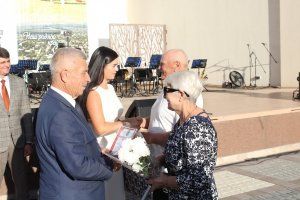 В 17:00 часов в Летнем кинотеатре началась церемония чествования семей – юбиляров супружеской жизни. С 50-летием совместной жизни руководство города поздравили Федота Спиридоновича и Галину Григорьевну Цыбульских, Владимира Борисовича и Надежду Петровну Погожих, Михаила Дмитриевича и Наталью Васильевну Покидовых, Александра Васильевича и Тамару Константиновну Мунтян.