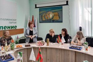 Руководитель рыбницкого отделения партии Наталья Мамалыга передала гостям поздравление председателя партии Галины Антюфеевой, депутаты парламента республики вручили дамам цветы.
