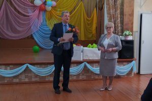 В честь юбилея депутат вручил школе сертификат на приобретение необходимых школе светильников дневного света внутренней установки.