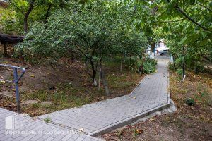 Уложен плиткой не только сам двор, но и входы в подъезды и участки под скамейками. По просьбе жильцов депутаты профинансировали также замощение плиткой тропинок для прохода через палисадник.