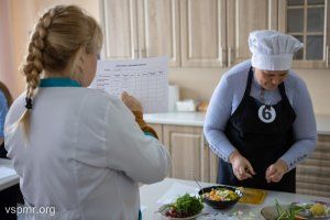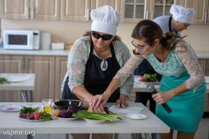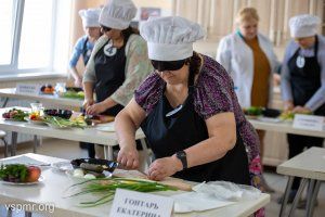 Каждая из шести конкурсанток пришла в этот день со своей кулинарной доской и ножом, который удобно ложится в руку. Перед тем, как был дан старт, помощники объяснили, что и где расположено на столе. Ведь незрячие хозяйки ориентируются наощупь. Они разложили продукты так, как им удобно и приступили. На приготовление было отведено полчаса. Все это время члены жюри следили за тем, как проходит нарезка салатов.