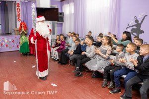 Спикер парламента пожелала детям верить в волшебство и вместе с помощниками вручила каждому сладкий новогодний подарок.