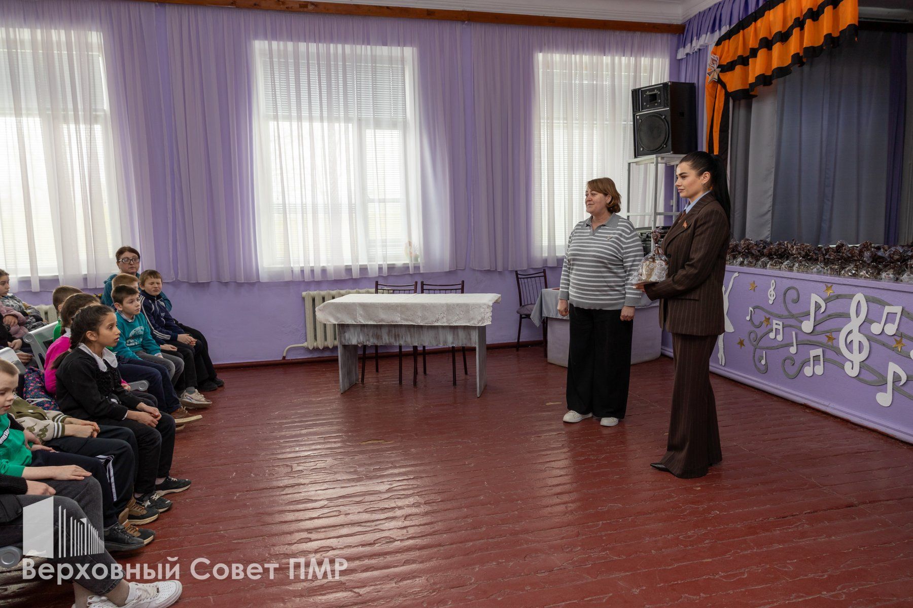 Дети подарили Председателю Верховного Совета поделку в пасхальной тематике. Директор школы-интерната Анжела Коскина рассказала, что воспитанники занимаются творчеством и сами предложили к приезду Татьяны Залевской сделать для нее подарок своими руками.