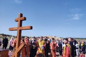 По окончании литургии прошла торжественная закладка храма. Священники положили освященные камни в основание. Строительные работы начнутся на этой неделе.