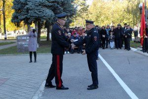К памятнику милиционерам, погибшим при выполнении служебных обязанностей, присутствующие возложили живые цветы.