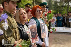 У памятника Неизвестному солдату в поселке Новотираспольский сегодня состоялся памятный митинг. С портретами дедов и прадедов, которые защищали Родину от фашистов, пришли студенты аграрно-технологического факультета ПГУ, общественники, ветераны, жители поселка и микрорайона «Западный». Вместе с депутатом Верховного Совета по округу «Западный» Галиной Антюфеевой они почтили память советских солдат и офицеров, освободивших родину от коричневой чумы.