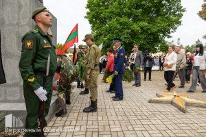 Жители округа «Западный», студенты, депутаты возложили цветы к памятнику погибшим советским воинам. После возложения подрастающее поколение приднестровцев порадовало всех присутствующих концертными номерами. Дети танцевали, пели и читали стихи. Затем всех угощали традиционной солдатской кашей с тушенкой и горячим чаем.