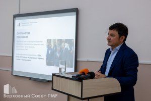 Юрий Кучеренко выступил с презентацией на тему «Верховный Совет Приднестровья. Задачи дипломатии», рассказав об истории республики, о дипломатии признания, межпарламентских контактах, сотрудничестве с другими странами и роли Верховного Совета в миротворческих процессах.